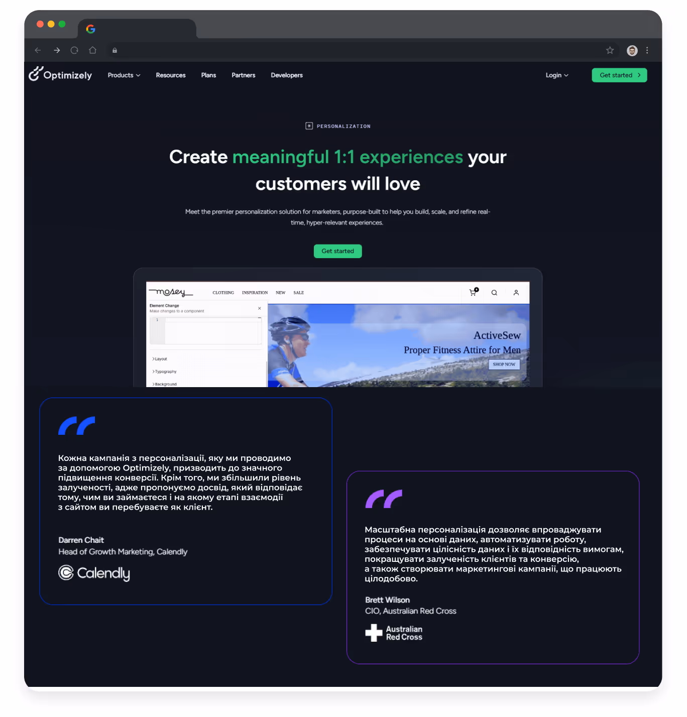 - Візуальний редактор для адаптації елементів сторінки — можна змінювати банери, тексти, кнопки залежно від аудиторій;