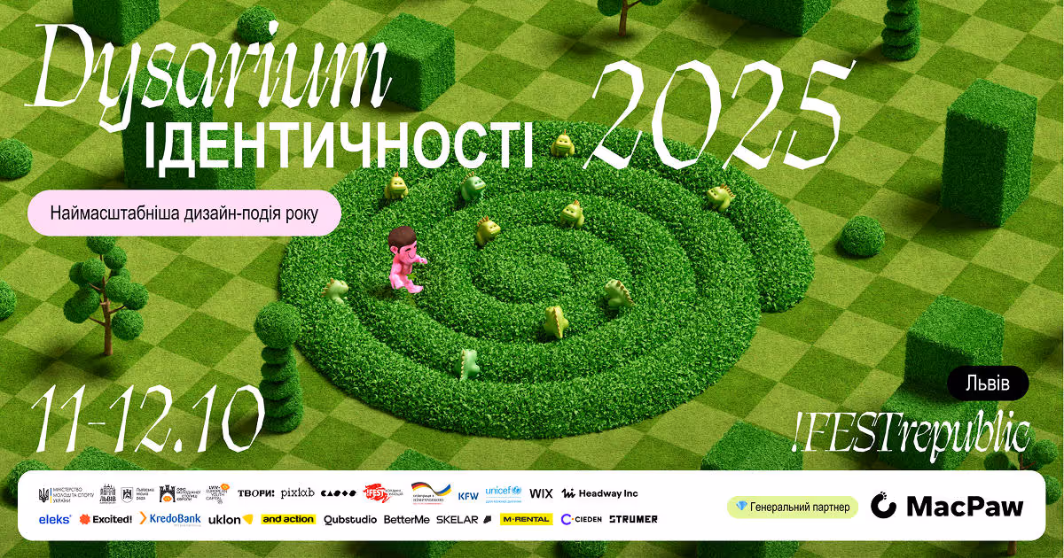 Дизаріум — всеукраїнська дизайн-подія, що вже втретє збирає українських та міжнародних фахівців. Цьогорічна тема — «Ідентичності», бо ми всі — більше, ніж професія: дизайнери, волонтери, воїни, ті, хто підтримує близьких і творить зміни.