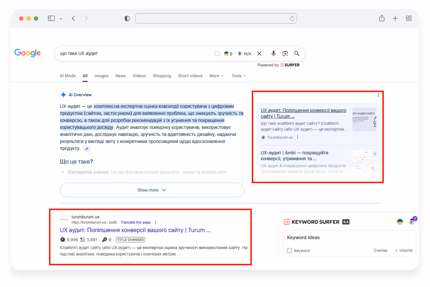 Тож якщо ви хочете досягти зробити свій веб ресурс «видимим» для алгоритмів штучного інтелекту, до оптимізації сайту потрібно підходити комплексно. Так, в Турум-бурум ми аналізуємо поведінку користувачів, знаходимо проблемні UX/UI елементи та пропрацьовуємо гіпотези їх покращення.