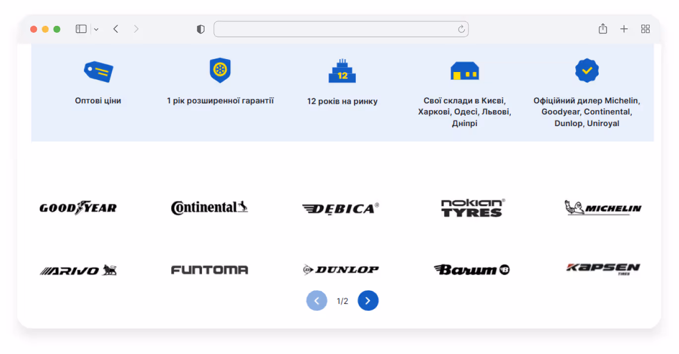 - Зазначати логотипи партнерів або медіа, де згадували ваш бренд;