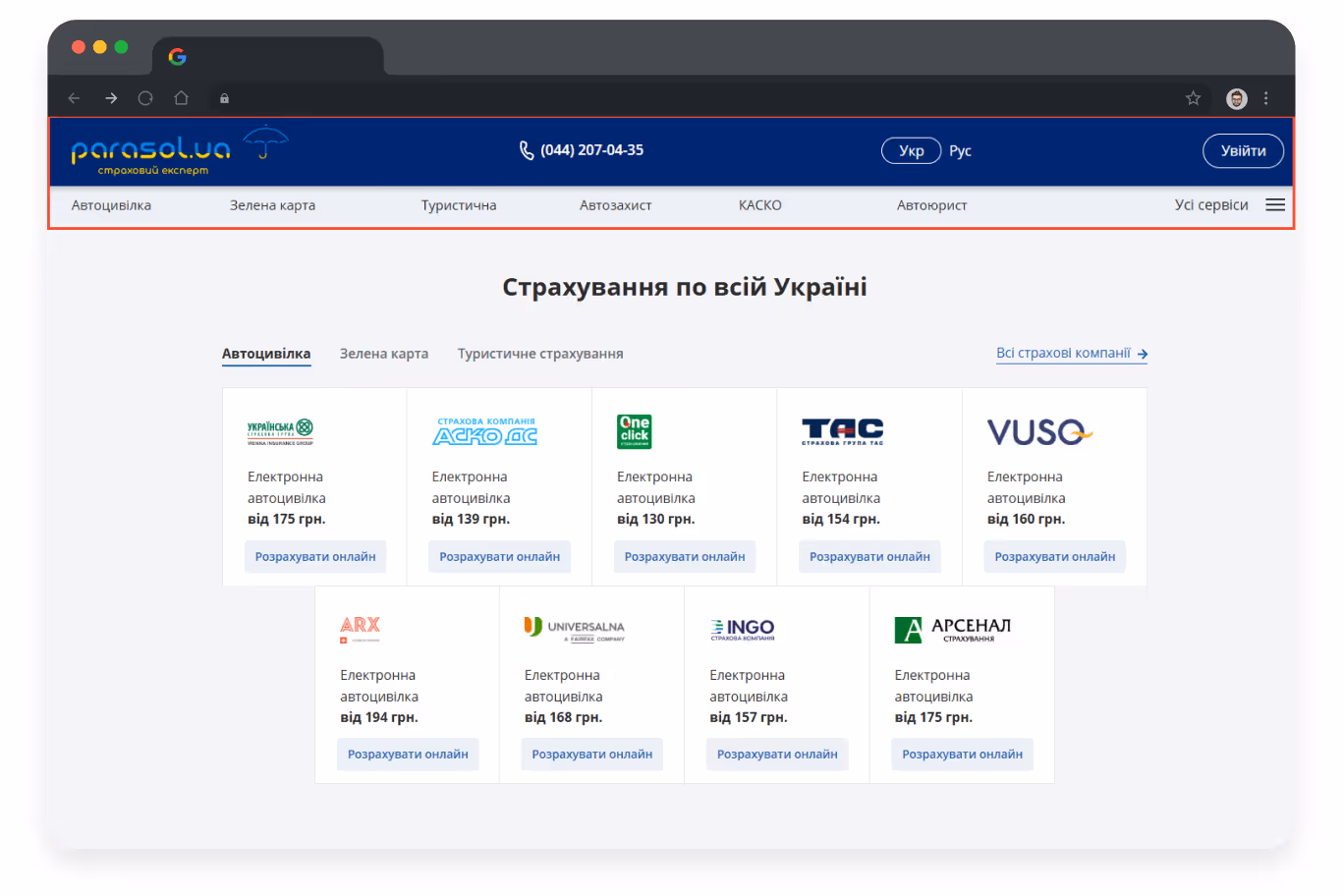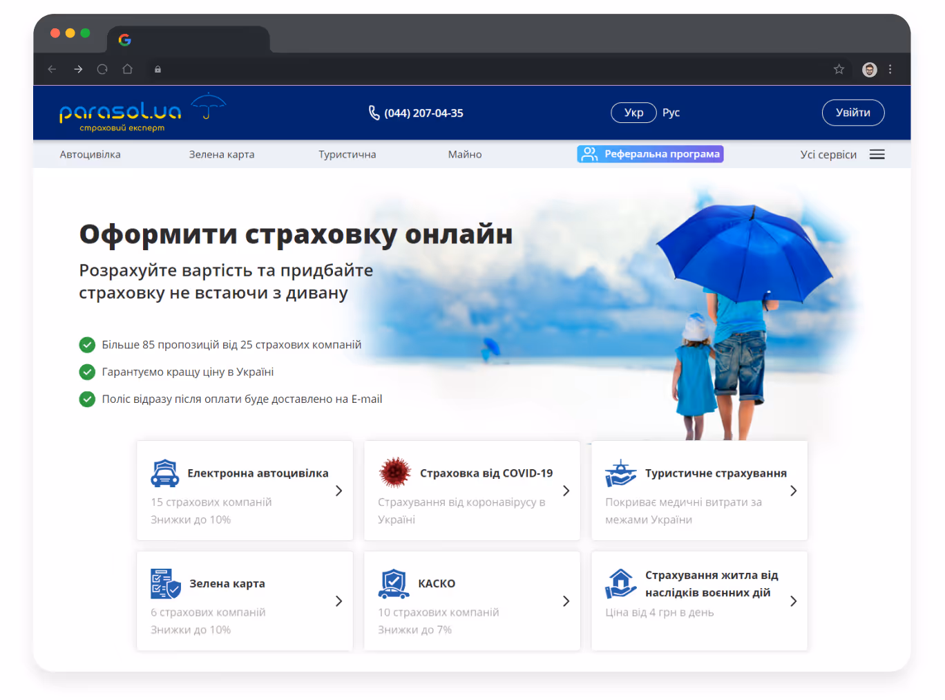 1. Parasol.ua: UX/UI-дизайн для вебсайту онлайн-страхування