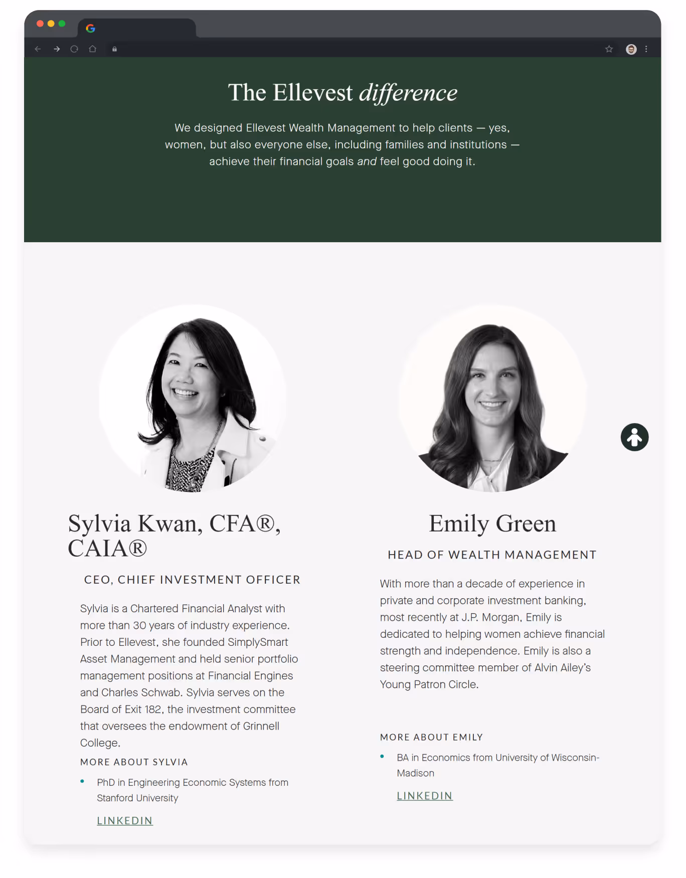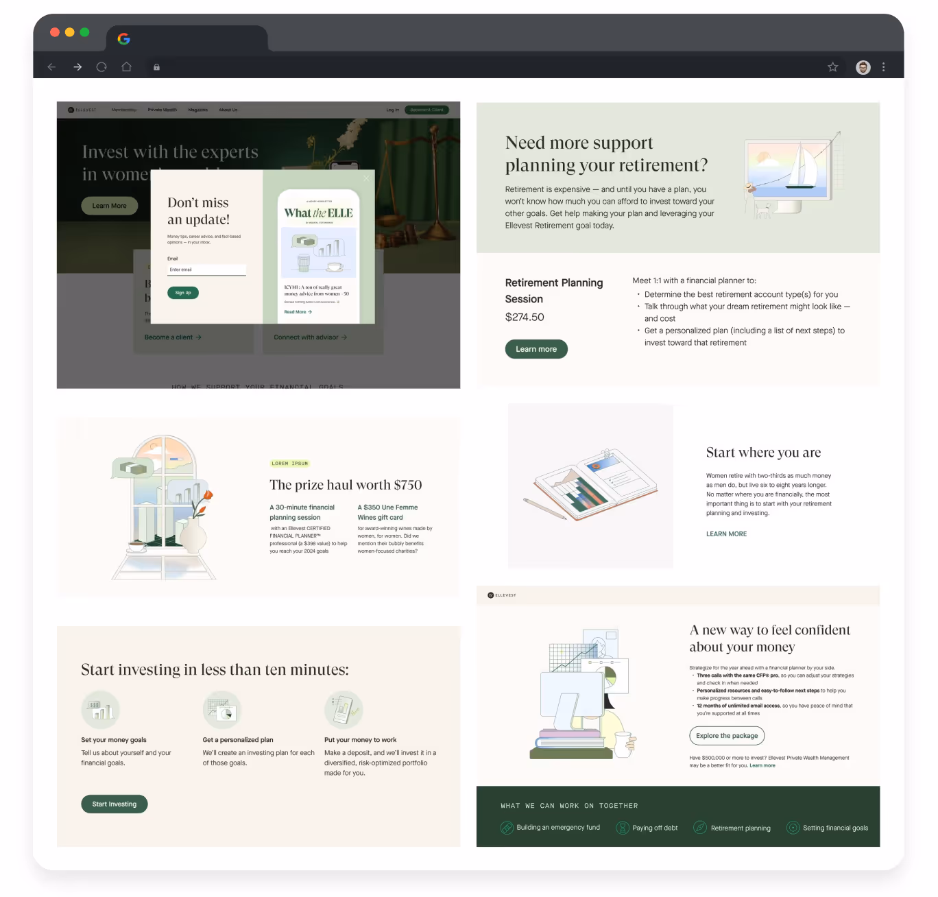 Ellevest — це онлайн-платформа для інвестицій та фінансового планування для жінок. Платформа поєднує персоналізовані інвестиційні плани з простим та інтуїтивно зрозумілим UX/UI, щоб зробити фінанси зрозумілими та доступними для всіх.