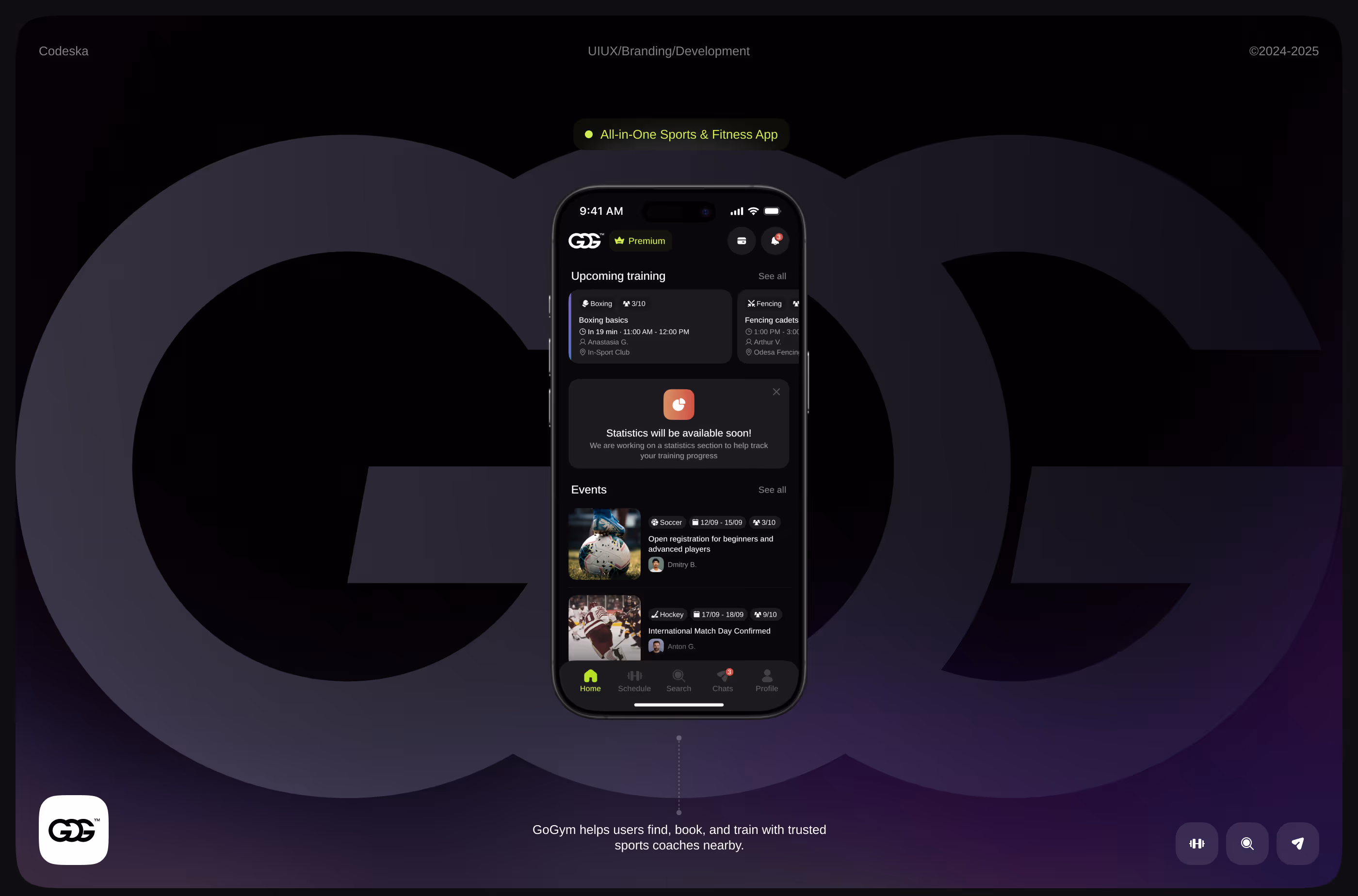 Окрему увагу приділили користувацькому досвіду — навігація була спроєктована таким чином, щоб користувач міг знайти тренера та забронювати заняття за мінімальну кількість кроків.