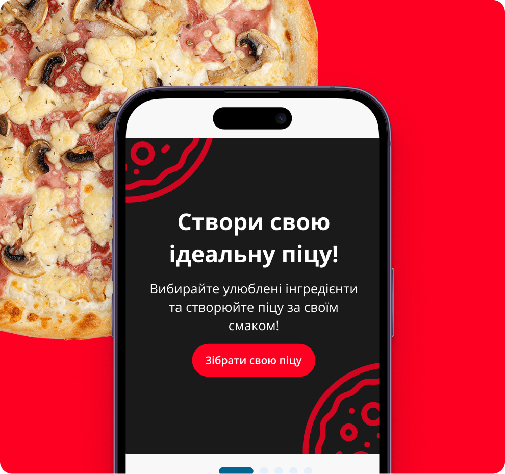 - Більш зрозумілий вибір товарів завдяки компактним карткам, видимому розміру піци та фіксованим фільтрам.