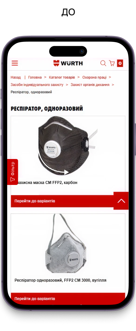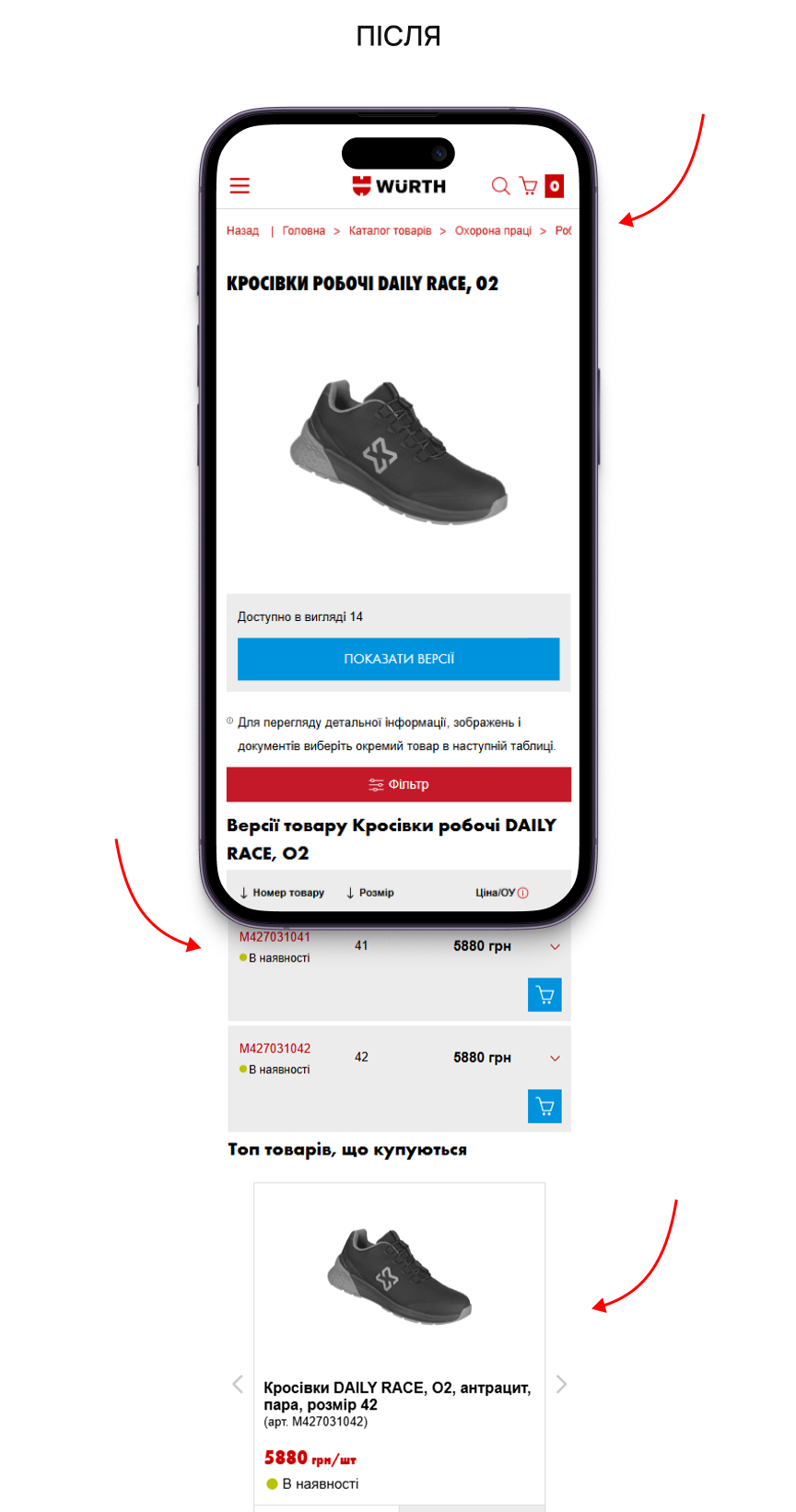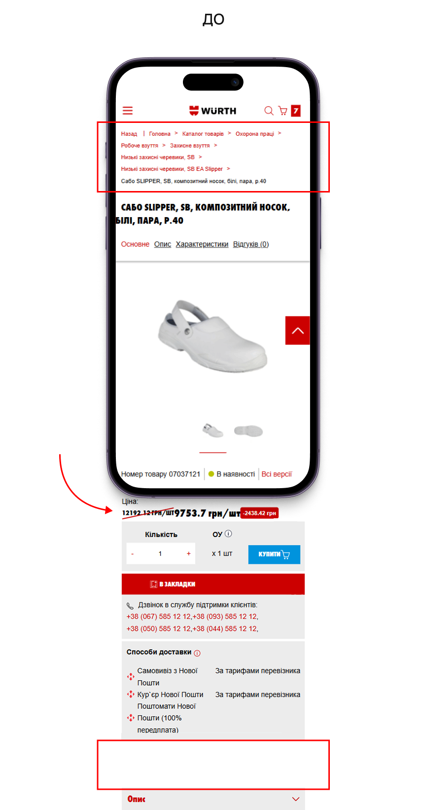 - Хлібні крихти займали третину екрана, тому користувачі мусили скролити, щоб побачити фото, ціну чи кнопку «Купити».