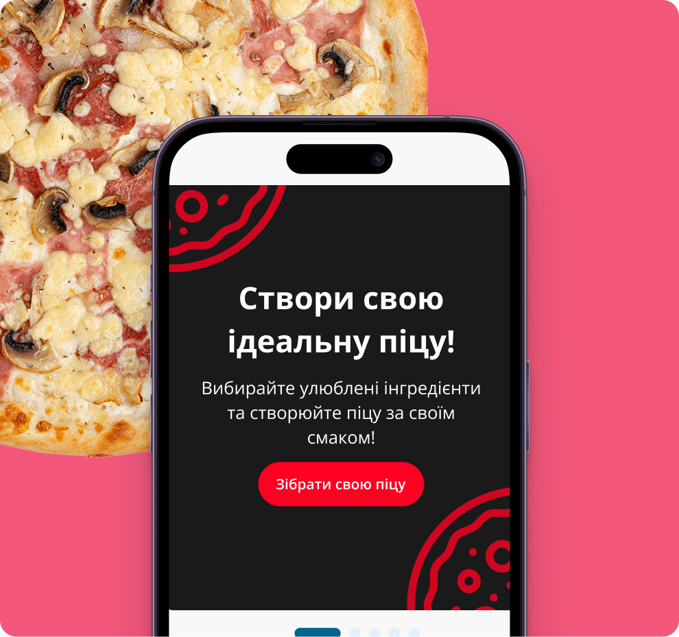 - Более понятный выбор товаров благодаря компактным карточкам, видимому размеру пиццы и фиксированным фильтрам.