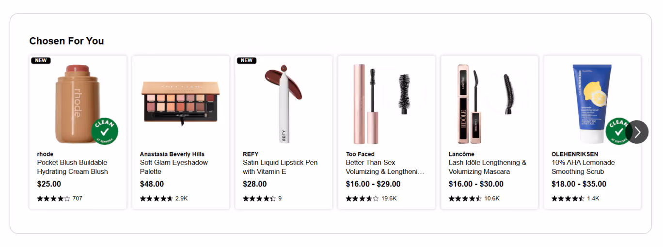 Чтобы избежать таких тенденций, Sephora реализовала на своем сайте ряд AI‑решений (источник), которые выводят сервис бренда в топ рынка: