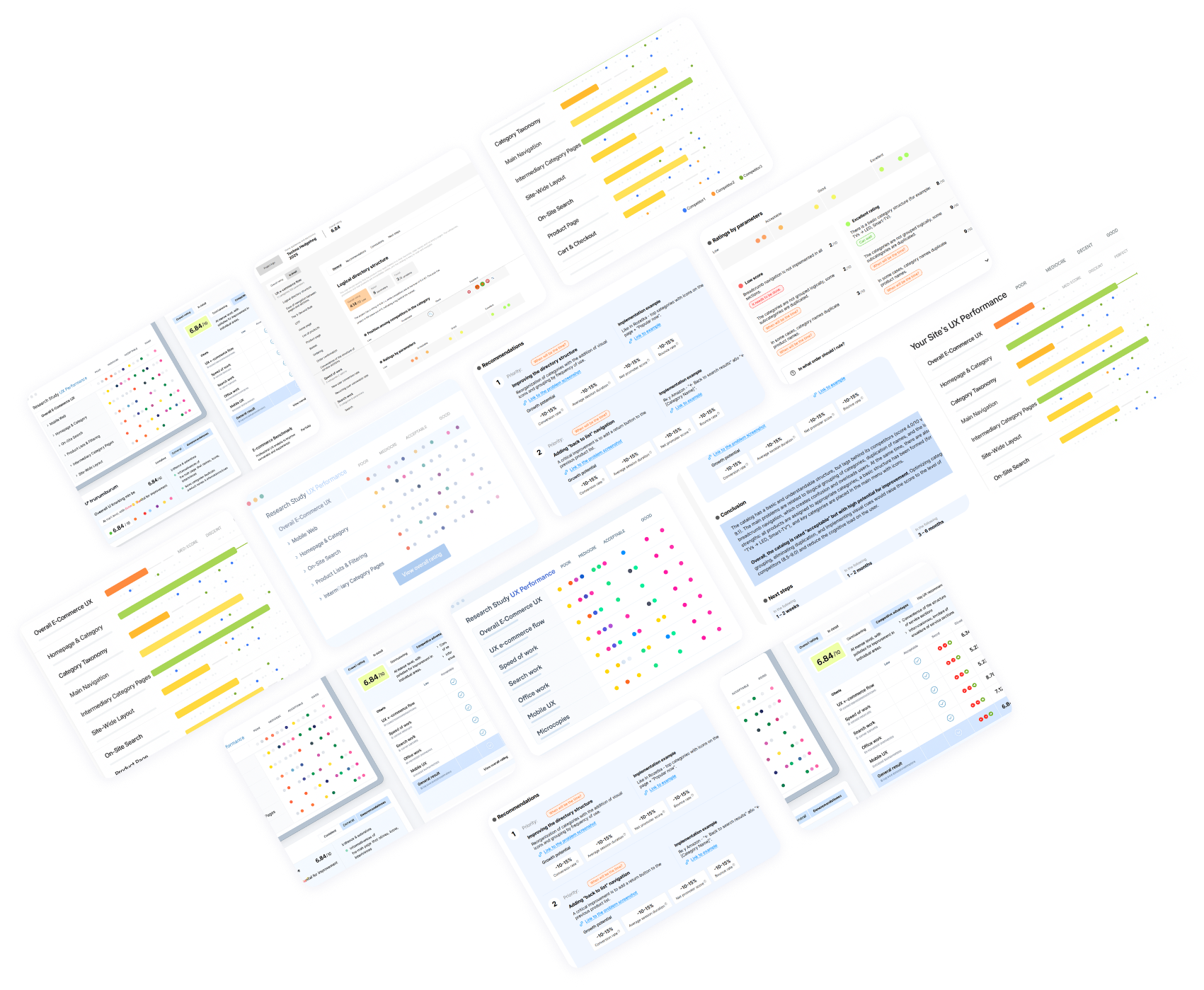 - UX-оцінки за кожним напрямком із кольоровим маркуванням та детальним поділом на понад 30 категорій юзабіліті;